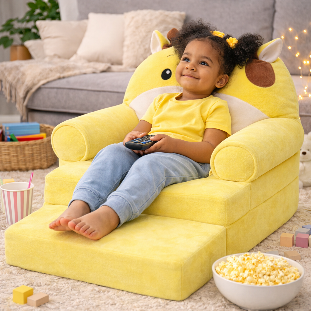 Designed for endless comfort and fun, this plush kids sofa gives your little one the perfect place to relax, play, or drift into nap time—while adding charm to any room.